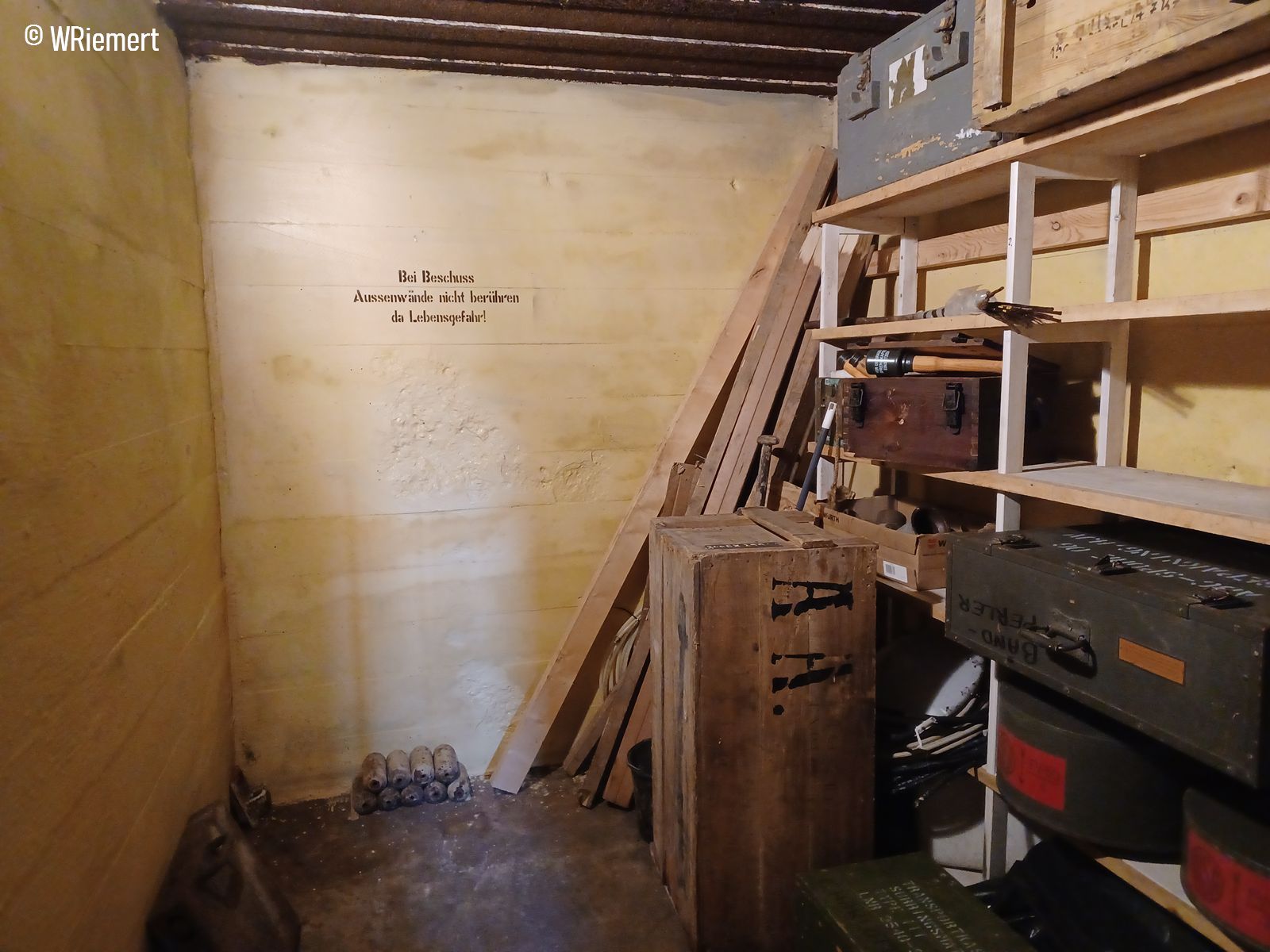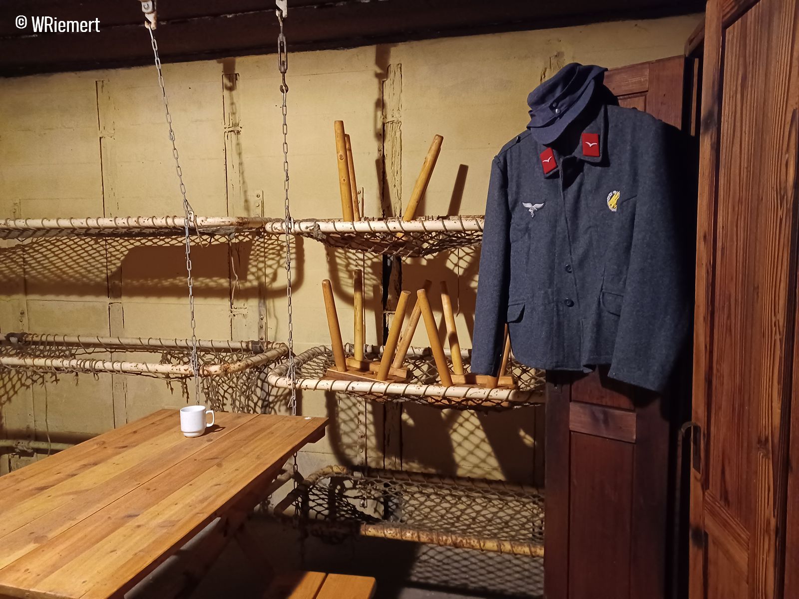 Mannschaftsraum, alles Original außer Tisch und Hocker
