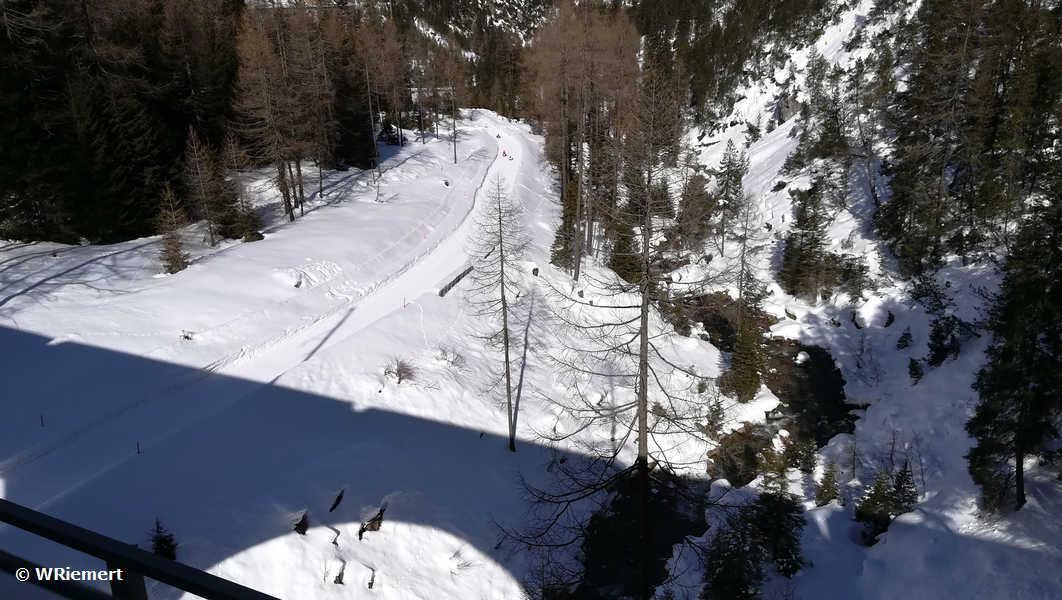 Blick aus dem Zug auf die Schlittelbahn
